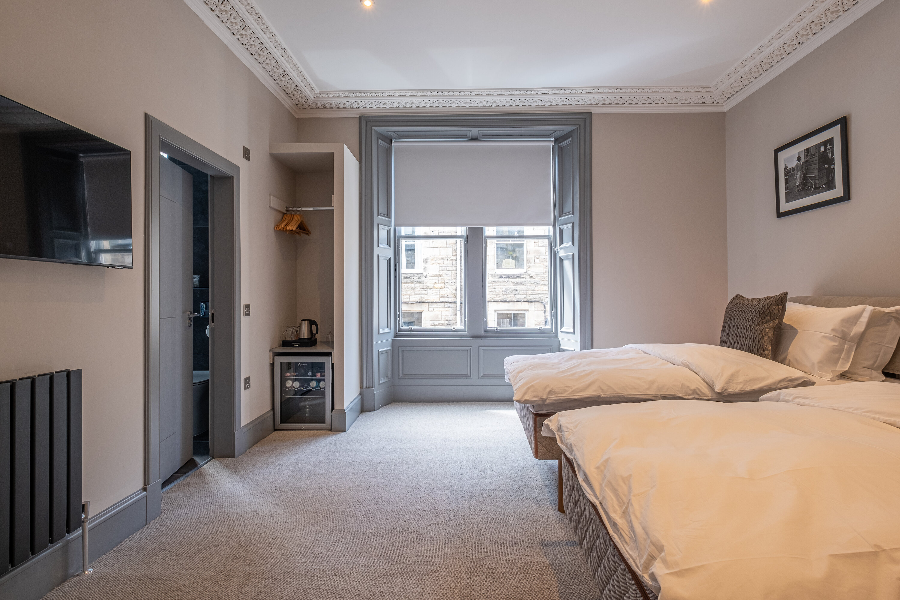 يقدم فندق The Arran سكناً فاخراً معاصراً يضم 8 غرف نوم. في الطابق الأرضي، يوفر المبنى الذي تم تجديده بالكامل جناحين فاخرين، أحدهما يتيح إمكانية الوصول إلى الحديقة (جناح الحديقة)، والآخر جناح Murray الملحق به أكبر حمام في فرع سانت أندروز. ويوجد أيضًا غرفة بسرير بحجم كينج/سريرين بحجم صغير ملحق بها حمام وتتميز بإطلالات على الحديقة (غرفة 4). في الطابق الأول، يوفر جناح Morris غرفة فاخرة بسرير بحجم كينج/سريرين بحجم صغير وملحق بها حمام، وتحتوي الغرفة على منطقة جلوس لمزيد من الاسترخاء. في هذا الطابق توجد الغرفة 5 التي تضم سرير بحجم كينج/سريرين بحجم صغير وتتميز بحمام كبير مدهش داخل الغرفة. ويوجد في الطابق العلوي في الممر غرفة Wee Double التي تحتوي على حمام بمنطقة استحمام تتسم بالخصوصية، بالإضافة إلى غرفتي نوم بسرير بحجم كينج/سريرين بحجم صغير وملحق بكلٍ منهما حمام (الغرفة 7 والغرفة 8) ، ويقع فندق The Arran على بعد 275 ياردة من نقطة الانطلاق الأولى في ملعب الجولف القديم و5 دقائق سيراً على الأقدام من جميع المحلات التجارية والبارات والمطاعم في سانت أندروز.