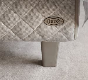 DUX Royal مجموعة من ملحقات الأسِرَّة التكميلية مثل أغطية السرير الجانبية ووسائد الزينة. طُور هذا التصميم بالتعاون مع فندق Hotel d’Angleterre الشهير في كوبنهاغن. لوح رأس ببطانة مريحة وداعمة. يعتمد التصميم البسيط على شكل العقد العميقة التقليدي، ويتوفر كذلك بأزرار ودون ازرار.