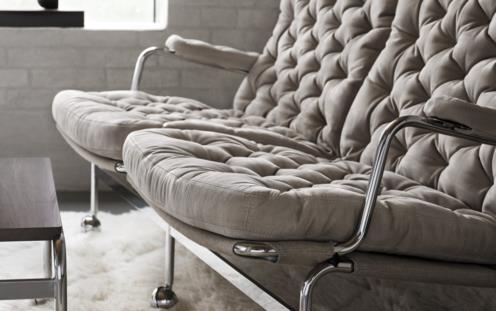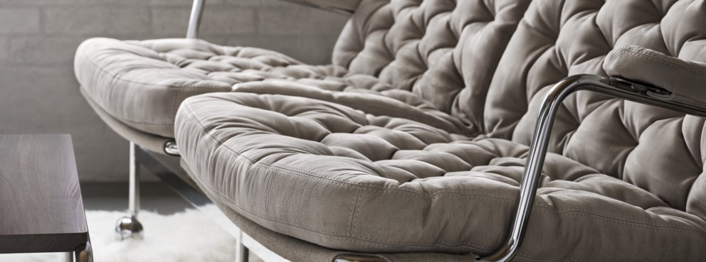 إن Karin 73 أريكة أنيقة ثنائية المقاعد تعتمد على تصميم كلاسيكي، مع إطار من الكروم الفاخر ووسائد بدرزات عميقة.