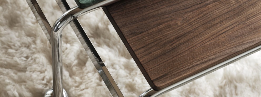 استنادًا إلى طاولة "برونو ماتسون" الأصلية، المصممة لمرافقة كرسيه الكلاسيكي، يوفر هذا الخيار أكبر قدر من المساحة السطحية، ولكن مع الجمال الأنيق نفسه الذي يميز مجموعة Karin. الإطار المطلي بالكروم مطلي بطبقة علوية من الرخام، أو الحجر الجيري، أو خشب الجوز المستخدم خصيصًا لهذا المنتج.