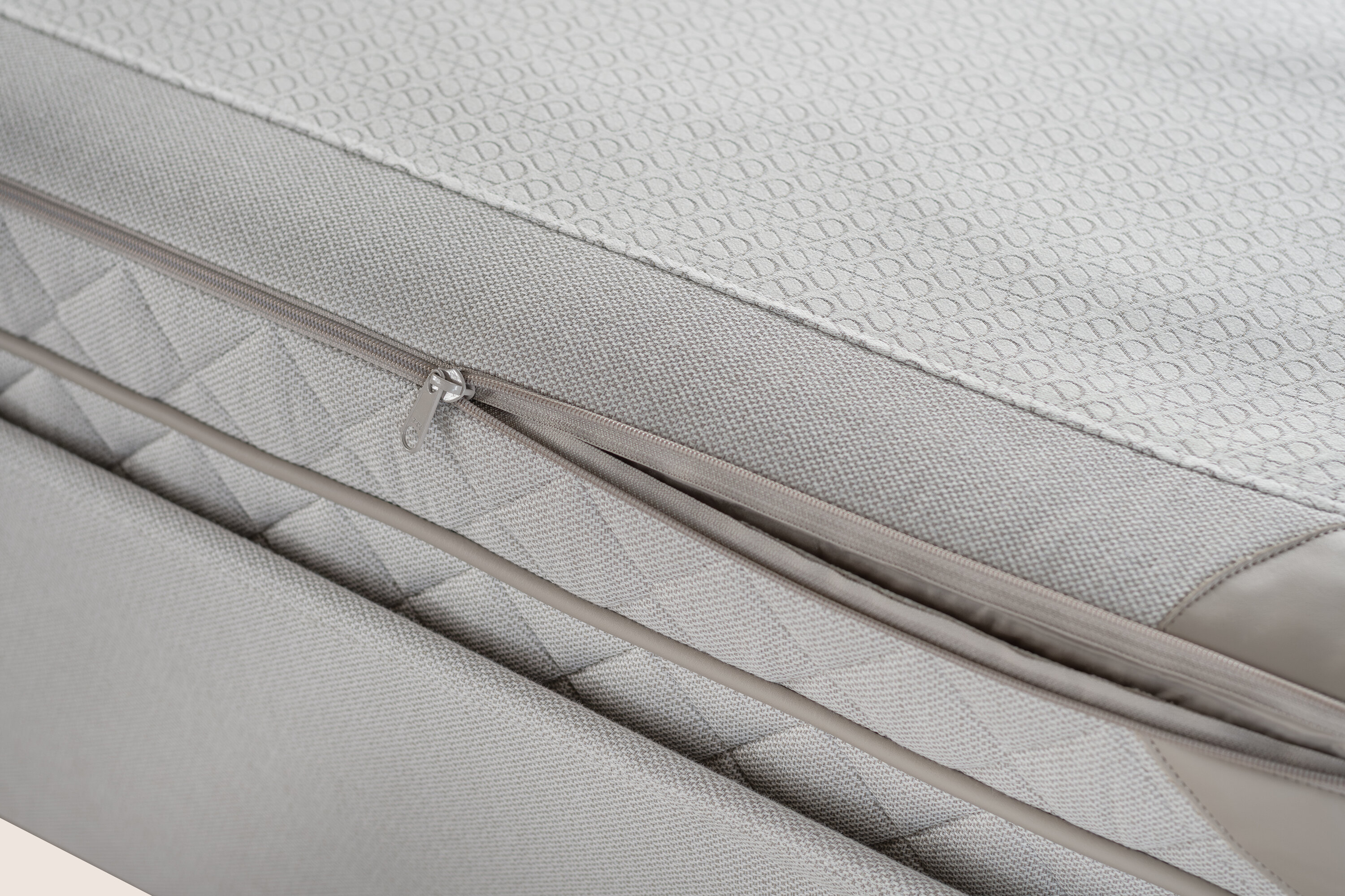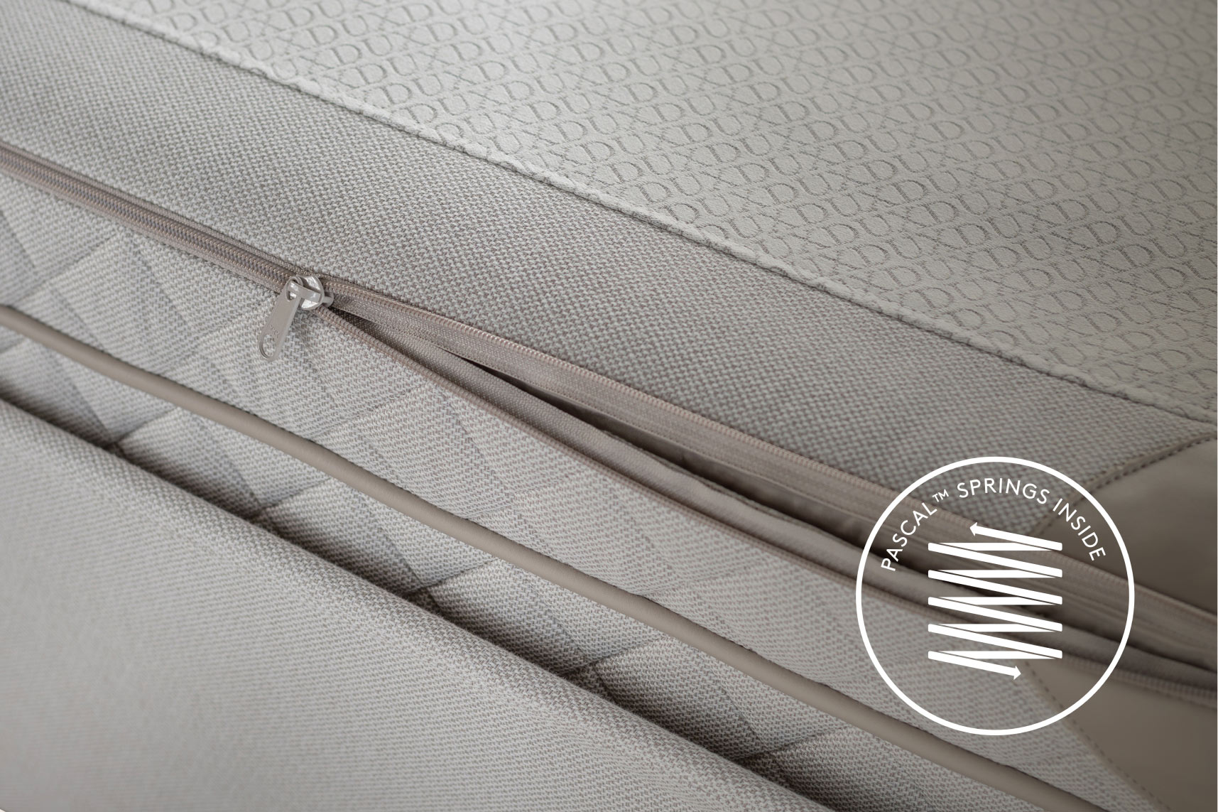 يمكن فك الطبقة العلوية من سرير DUX المزود بنظام باسكال لتكشف عن ست علب زنبركية قابلة للتبديل؛ بواقع ثلاثة لكل جانب. يمكنك ترتيب العلب بناءً على حجم جسمك وشكله واحتياجاتك.